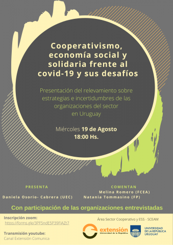 Les invitamos a compartir esa actividad donde presentaremos los resultados del documento para intercambiar y reflexionar sobre los desafíos que se nos abren. Daniela Osorio-Cabrera (UEC) presentará ejes centrales del relevamiento y desde una lectura aguda, contaremos con los aportes de las invitadas Melina Romero (FCEA) y de Natania Tommasino (FP) para abrir claves del debate con integrantes de las organizaciones.